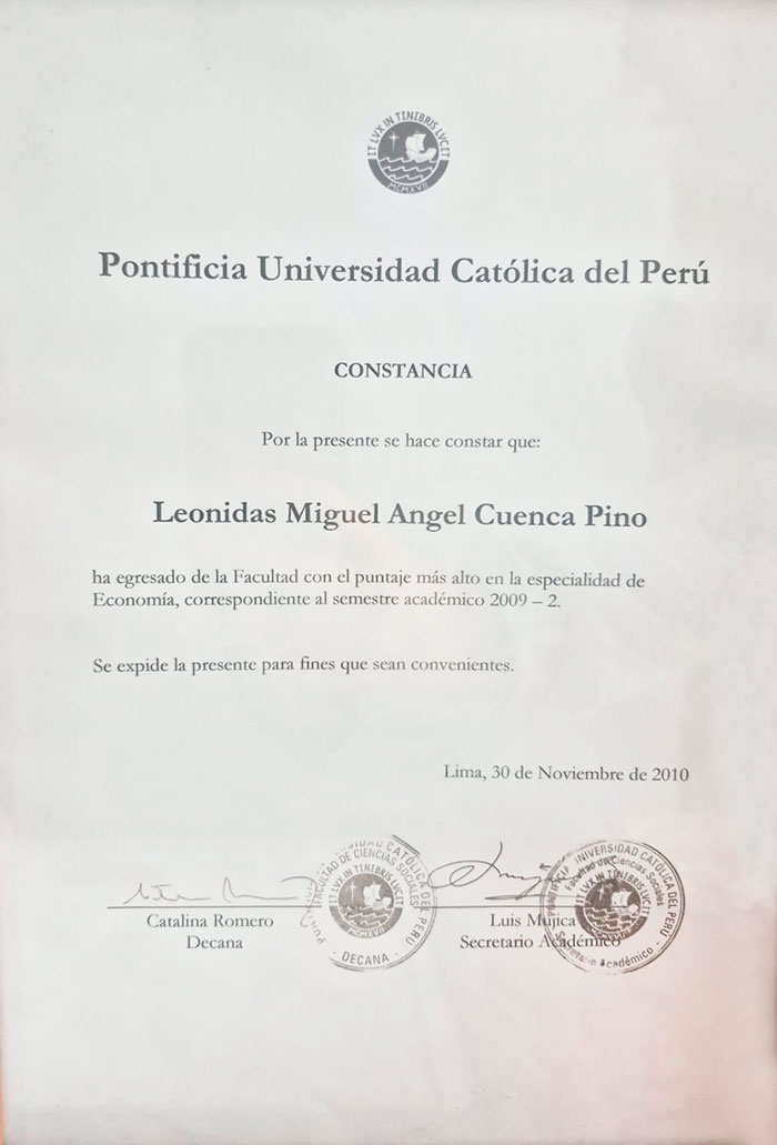 Hola, soy Leonidas Cuenca Pino, experto en desarrollar estrategias empresariales orientadas a resultados concretos. Economista con más de una década en consultoría económica y de negocios.